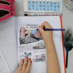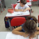 Cada criança recebeu uma folha de atividade com dicas para ser um bom pedestre. Realizamos a leitura e debatemos o assunto, trocando vivências. Em seguida, pegamos o livro didático de Geografia para realizar a página 56 (depois de trabalhado, como conteúdo, o seu bairro e sua rua). Na atividade, exploramos o semáforo, suas cores e significado, atitude correta e incorreta do pedestre na cena e semáforo para pedestre.