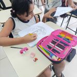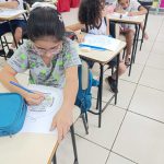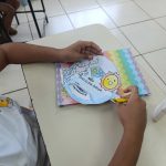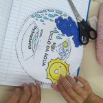 Em seguida, os alunos participaram de uma atividade interativa sobre o ciclo da água. De forma dinâmica, eles organizaram as etapas do ciclo e discutiram o percurso da água na natureza. A proposta permitiu que os estudantes colocassem em prática o que aprenderam, tornando a aula mais envolvente, significativa e favorecendo a construção do conhecimento de maneira participativa.