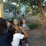 Após o cuidado, brincaram embaixo das árvores e observaram que havia pitangas maduras, algumas quiseram experimentar esta fruta.