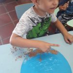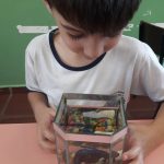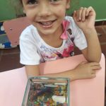 Assim, a professora fez a leitura compartilhada do livrinho O dourado de Mary França e trabalhou com os alunos a necessidade de não poluir as águas dos rios, mares, lagoas, represas, córregos… pois são fonte de sustento e sobrevivência para todos nós. A garotada participou das atividades e fizeram um painel para que os outros colegas pudessem ver e aprender também.