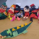 Logo após o termino da atividade os alunos juntamente com as professoras montaram um teatro de fantoches com alguns personagens do folclore, relembrando o video que haviam assistido antes.