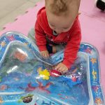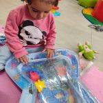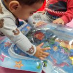 Ainda abordando o assunto sobre a importância da preservação das nossas nascentes e o consumo consciente da água, preparei, como forma de fixação de conteúdos,uma “observação” do mundo do fundo do mar com um espetinho de água. Enquanto os alunos exploravam o tapete interativo, trabalhávamos os nomes dos seres vivos que encontramos na água.