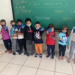 * Folha registro com o carimbo da mão – Leitura das poesias: Cuidando da Natureza e o futuro está em nossas Mãos.