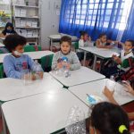O foco concentrou em o que estou fazendo para melhorar o meio ambiente? Então fizemos atividades utilizando as garrafas pets, escrevendo, desenhando e colorindo o mundo que desejo e ações que possam melhorar o meio ambiente.