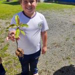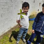 No dia da árvore, plantamos com as nossas crianças, da fase 2 A, uma árvore frutífera na escola. Eles escolheram o abacate que o coleguinha de sala havia deixado num copo com água para ter raízes, plantou para ela crescer e depois trouxe à escola para ser plantado juntamente com o colega.