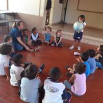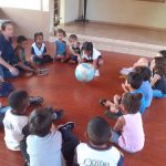 E com o Globo terrestre nas mãos, as crianças observavam, oceanos e continentes, equador, hemisférios, levantavam suas hipótese em relação, a localidade das florestas, onde estão os animais, e o urso polar, onde ele mora?