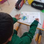 Na aula de hoje a professora Andrea trabalhou com os alunos do 1º ano sobre os cuidados que devemos ter com o nosso planeta TERRA.