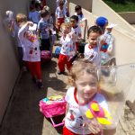 Texto: Na sala de aula as crianças aprendem que devem cuidar e organizar os jogos e brinquedos para mantermos por mais tempo. Quando trabalham com recorte e colagem, o material que sobra deve ser colocado no lixo, quando não tem mais utilidade. Cuidando do seu material escolar ele dura mais. As crianças levam para casa as experiências vividas em sala de aula e ensinam seus pais, mostrando que não devem jogar papel ou sacolinha no chão, nas ruas e praças, pois tudo vai direto para o bueiro que por sua vez segue seu caminho até os rios e oceanos.