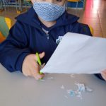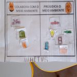 Foi ofertado uma folha onde as crianças colaram o que elas recortaram sobre o que colabora com o meio ambiente e o que prejudica o meio ambiente.