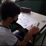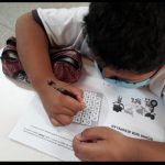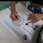Depois, fizeram uma atividade relacionada ao trânsito, a qual deveriam procurar a palavra “RODAR”, no caça- palavra.