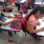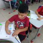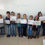 Para verificar os conhecimentos prévios dos alunos, lancei a pergunta: “o que é trânsito?”. Foi feita uma discussão oral onde cada aluno deu sua opinião. Em seguida, distribuí uma folha sulfite para cada aluno desenhar o que é trânsito para ele e escrever uma frase. Depois, cada criança mostrou seu desenho para a classe e leu sua frase. Para encerrar, dei aos alunos um texto que explica o que é trânsito e mostra os tipos de sinalização de trânsito existentes. Fizemos a leitura, os alunos tiraram suas dúvidas e pintaram os desenhos.