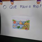 Após todos estes questionamentos e intervenções da professora, coletamos alguns materiais para elaboração dos nosso cartaz “O Que Polui o Rio?”