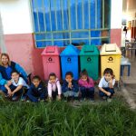 Desenvolvemos a atividades de coleta seletiva: preservação ambiental – Destino do lixo escolar, quem o produz e quem cuida do lixo. Em roda de conversa verificamos os conhecimentos prévios sobre a coleta seletiva na escola e quais os lugares onde estão guardados; colorir desenhos dos latões de lixo de acordo com as cores correspondentes; colorir desenhos e relacionar o lixo colocando cada produto reciclável na lixeira correta observando as cores da lixeira, fomos depois levar alguns lixos e depositar nas lixeiras existentes na frente da escola.
