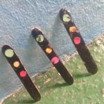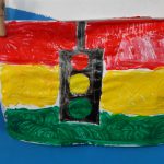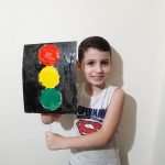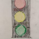 Fizemos uma oficina de pintura e desenho onde os alunos puderam reforçar a mensagem de cada cor do semáforo. Essa atividade foi realizada no ensino híbrido.