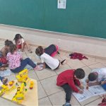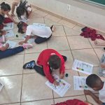 - As professoras desenvolveram o semáforo na lousa juntamente com as crianças, explicando o significado de cada cor.