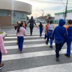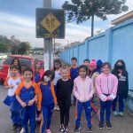 O 2º ano, da professora, depois de explorar conceitos em sala de aula sobre trânsito e pesquisarem sobre sinalização, saíram para a rua, para colocar em prática o que haviam conhecido. Reconheceram placas e sinalização de trânsito… Observaram os meios de transporte local e tudo o que faz parte da vizinhança da escola. Aula produtiva, construindo conhecimentos de forma prazerosa e significativa.