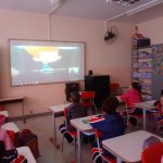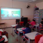 Os alunos dos 1ºs anos assistiram a um vídeo da turma do Zé Quest sobre: Que tal humanizar o Trânsito?