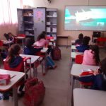 Roda de conversa com explanação das opiniões sobre o uso do cinto de segurança e as placas de trânsito, onde algumas delas comentaram que andam no carro no banco da frente ou mesmo atraás sem cinto de segurança, muito menos em cadeirinhas específicas da idade e peso. Foi muito produtiva a conversa e a conscientização dos alunos para falarem aos pais, e o resultado foi imediato; observamos que vários alunos colocaram em prática os aprendizados obtidos.