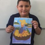 Essa atividade foi realizada pela professora de arte, Andrea, na qual trabalhou a obra “O vendedor de frutas”, de Tarsila do Amaral.
