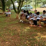Após discussão em sala sobre o bairro onde vivem e também o da escola, professora e alunos andaram entorno da escola e foi observados algumas questões ambientais, como: cuidados e preservação, se tinha lixo jogado nas ruas, se tem árvores, entre outros. No jardim da escola, os alunos desenharam uma parte que mais observaram. Para finalizar, discutimos sobre tudo o que foi visto.