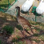 A ave apareceu próximo a horta, para observar.