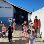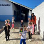 A aula teve início com uma roda de conversa sobre o trânsito, os principais códigos e o significado das placas utilizadas para garantir a segurança de pedestres e motoristas. Após esse momento de troca, a professora conduziu uma caminhada com as crianças nos arredores da escola, observando a sinalização existente. Em seguida, disponibilizou placas de trânsito para que os alunos pudessem utilizá-las em atividades lúdicas, reforçando o aprendizado sobre regras e comportamentos seguros no trânsito.