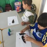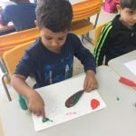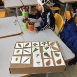 A proposta trouxe elementos da natureza para dentro da sala de aula. A professora trouxe muitos tipos de folhas e conseguimos coletar alguns no espaço da escola. Pudemos observar a diversidade, falar sobre os tipos de árvore. Confeccionamos um jogo da memória de folhas. Após leitura de história “O Menino e o Peixinho”, as crianças fizeram peixes a partir do formato de um tipo de folha.
