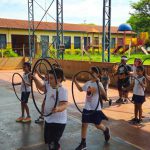 Inicialmente discutiram sobre as regras de trânsito e a necessidade de obedecê-las. Em seguida, fizeram uma brincadeira para explorarem seus aprendizados, na qual os alunos tinham que obedecer as cores do semáforo, ora sendo pedestres, ora sendo carros.