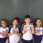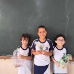 Na aula de hoje os estudantes do 3º ano aprenderam sobre lixos recicláveis. No fim da aula produziram um brinquedo com material reciclável e depois fizeram uma produção de texto instrucional de como o brinquedo foi confeccionado.