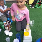 A atividade foi desenvolvida com cada turma do 1º e 2º turnos, a situação de aprendizagem desenvolvida foi a oficina utilizando materiais não estruturados trazidos pelas crianças, objetivando a confecção de brinquedos (garrafinha mágica/calmante,carrinhos, caminhões, motos, ônibus, bilboquê) inicialmente foi realizado uma roda de conversa com a professora caracterizada do Cubo Mágico que debateu com às crianças sobre os materiais trazidos por eles e costumam ter como destino o lixo podem se tornar brinquedos ou objetos interessantes,após o diálogo cada criança confeccionou o seu brinquedo,essa atividade contribui para a percepção de valores importantes sobre a preservação do meio ambiente contribuindo, assim, na formação de cidadãos ecologicamente conscientes e responsáveis.