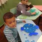 Criaram vários peixinhos coloridos com pratos de papelão que seriam descartados, alem de pesquisar toda vida marinha e como devemos respeitar o meio que nos cerca.