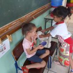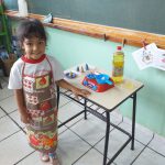 As professoras do pré I, realizaram uma dramatização com as próprias crianças relatando o cotidiano da casa e da família com atitudes corretas para o descarte do óleo de cozinha e para o meio ambiente. No final, todas as crianças da sala confeccionaram um folder, o qual foi levado para a casa com informações sobe descarte correto do óleo e informando que o nosso CEI é um ponto de coleta de óleo reutilizável. Informamos também, que com a venda desse óleo estamos comprando livrinhos infantil para a biblioteca da creche.