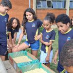 Após a coleta do óleo confeccionamos o sabão, e os estudantes passaram nas outras salas expondo o perigo de jogar óleo no ralo e entregando os sabões para os outros professores.