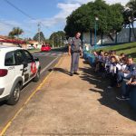 Com a visita do Policial Soffner, os alunos foram para a frente da escola ter uma conversa sobre a faixa de pedestre. Eles ouviram a apresentação de como deveriam proceder quando atravessarem a rua. Antes porém o policial questionou sobre o nome dos riscos pintados no chão (asfalto), que eles estavam vendo. Conversou também sobre as leis que proteje o pedestre, e as leis que o motorista precisa saber e colocar em prática o que aprendeu na autoescola (local que se aprende as leis de transito e a dirigir).