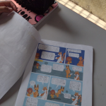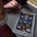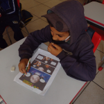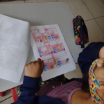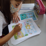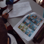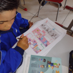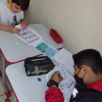 Produção textual de uma História em Quadrinhos. Através das figuras e da leitura que fizeram na aula anterior, os alunos realizaram a produção de H.Q, focando nas palavras chaves que muito temos visto nas outras atividades, que reforçam a necessidade de conscientizar a todos sobre a preservação do meio ambiente. Tivemos excelentes produções, Muito criativas e motivadoras.