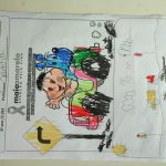 Nesta primeira etapa as crianças fizeram a pesquisa sobre o Maio Amarelo e depois fizeram duas atividades: desenho livre que a professora propôs.
