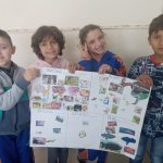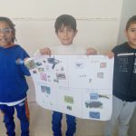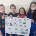 As crianças fizeram desenhos, produção de textos e cartazes em sala de aula.