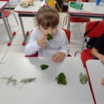 A atividade iniciou-se com um passeio dentro da escola para observar o meio ambiente. Eles visitaram o pomar, a horta e o canteiro de ervas aromáticas. Em uma roda de conversa, foi apresentado às crianças os cinco sentidos (paladar, olfato, visão, tato, audição) e os órgãos que utilizamos para sentir cada um deles. Foi levado para a sala de aula materiais com cheiros diversos como as ervas aromáticas disponíveis do canteiro da escola, chocolate em pó, café em pó, tomate, erva de chimarrão, algodão, lixa, massinha de modelar e áudios de discriminação de sons. Foi trabalhado com os alunos no coletivo e individualmente onde eles identificaram os cheiros, também usaram o paladar, o tato, a audição e a visão. O objetivo dessa atividade é valorizar o meio ambiente dentro da escola e ao mesmo tempo estimular os cincos sentidos do corpo humano.
