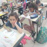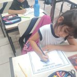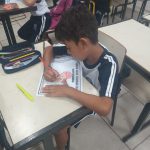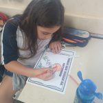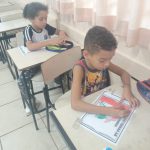 Os alunos puderam confeccionar a segunda página do livrinho sobre o meio ambiente.