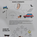 APÓS ASSISTIR AO VÍDEO E DISCUTIR O TEMA EM RODA DE CONVERSA, AS CRIANÇAS REALIZARAM OS REGISTROS PINTANDO SOMENTE O QUE OUVIMOS QUANDO ESTAMOS NA RUA E NUMERANDO AS ESTRELAS.