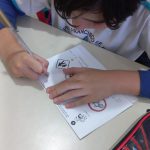 O formato das placas despertou a curiosidade da turma que fizeram alusão as placas que encontram no entorno da escola. Fizemos, então, uma roda de conversas sobre as sinalizações encontradas, sua importância e situações vividas pelas crianças relacionadas as placas de advertência e regulamentação.