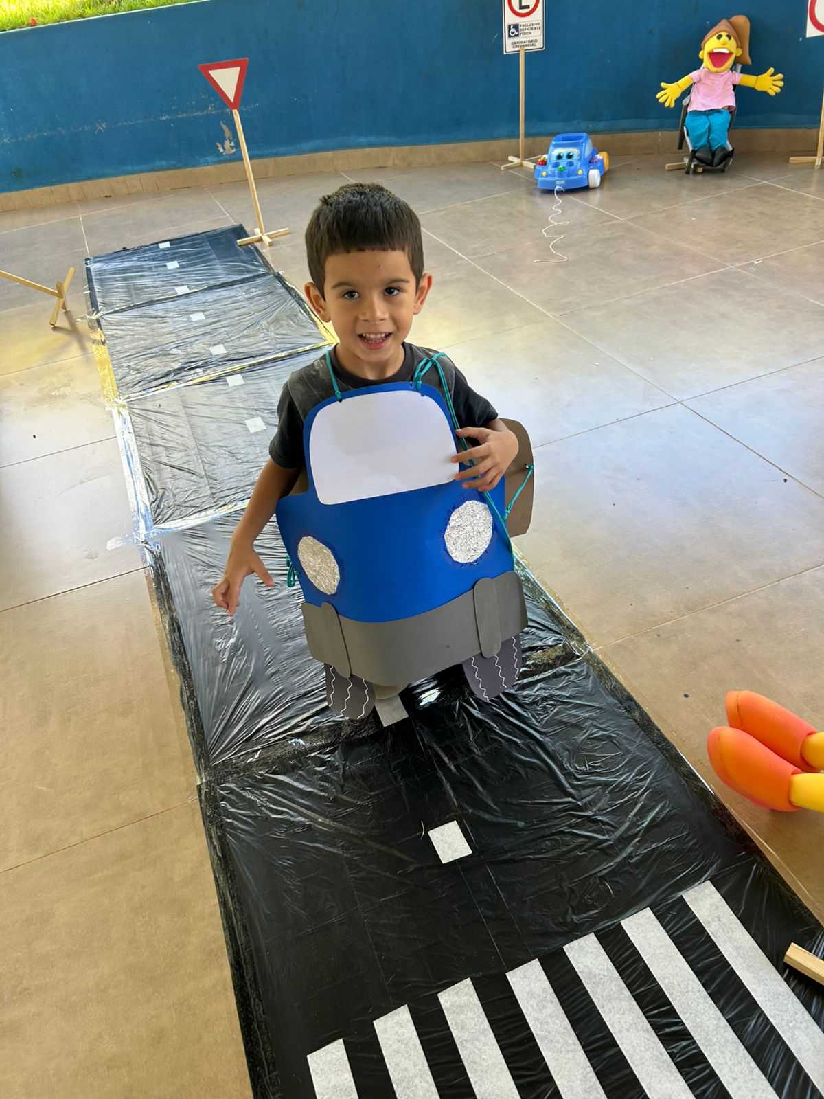 A atividade consistiu na criação de um jogo simbólico de trânsito onde as crianças puderam vivenciar as regras de circulação de veículos e pedestres. O ambiente foi preparado com a demarcação de pistas (utilizando sacos de lixo para sua confecção), …