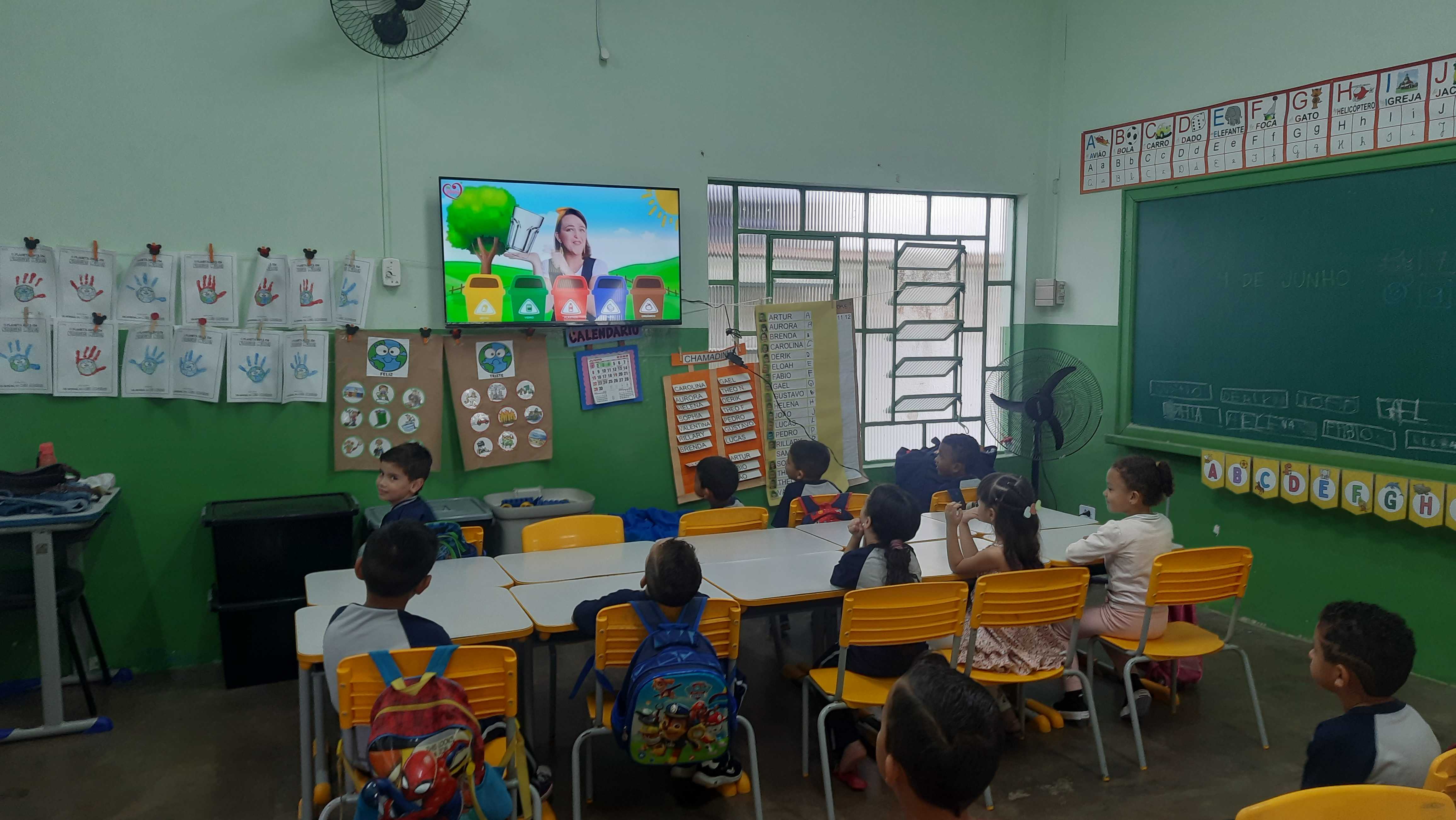 As crianças assistiram a um vídeo informativo sobre a coleta seletiva. Em seguida, cada uma recebeu a imagem de um tipo de lixo para colorir e recortar. Com essas imagens, confeccionamos um cartaz coletivo da coleta seletiva, no qual cada …