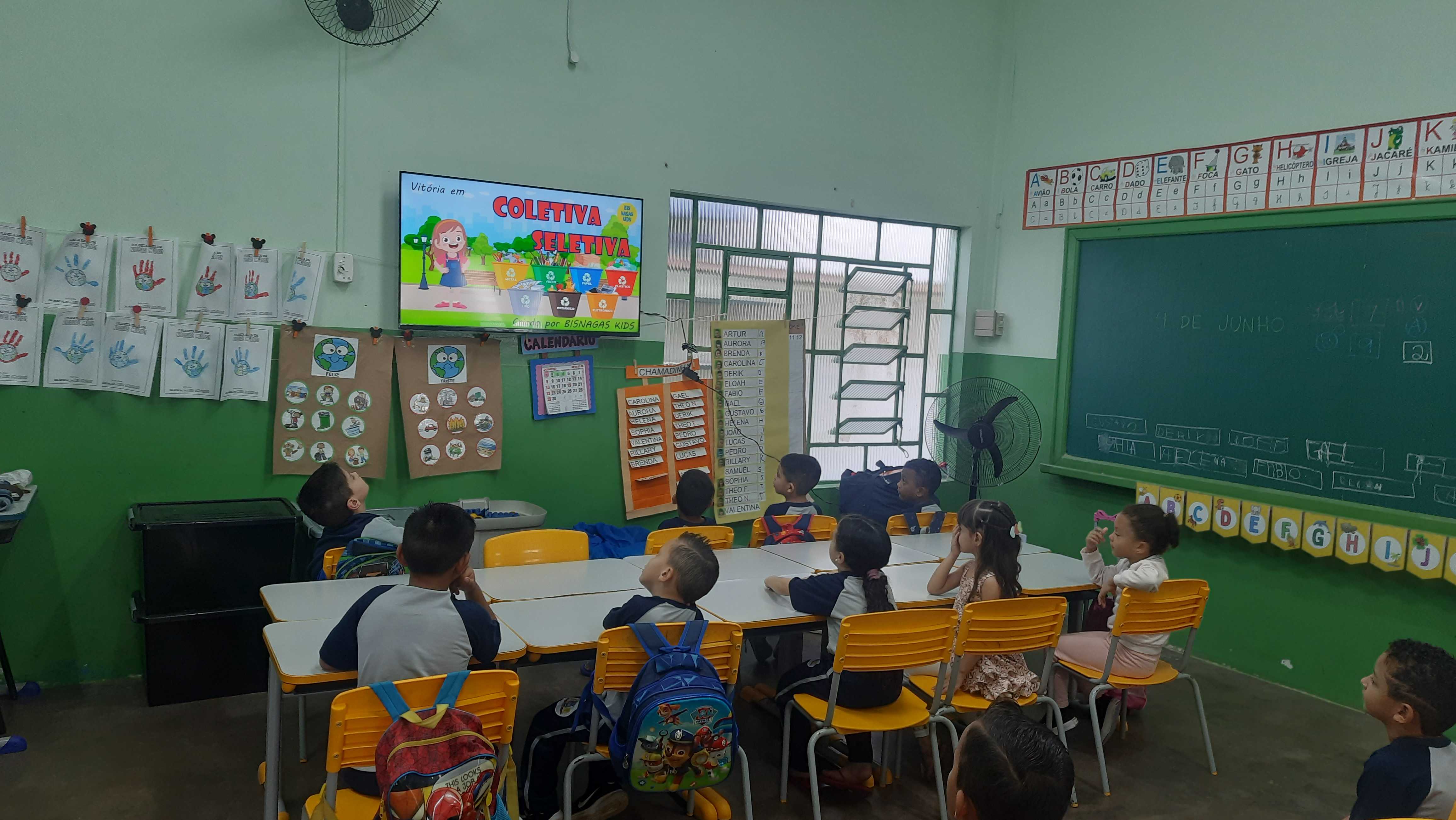 As crianças são orientadas a trazer de casa materiais recicláveis — como plástico, papel, alumínio, vidro ou lixo orgânico — para realizar a separação nas lixeiras da escola. Retomamos o tema da coleta seletiva, destacando a importância dessa prática para …