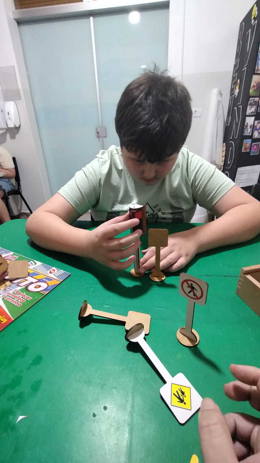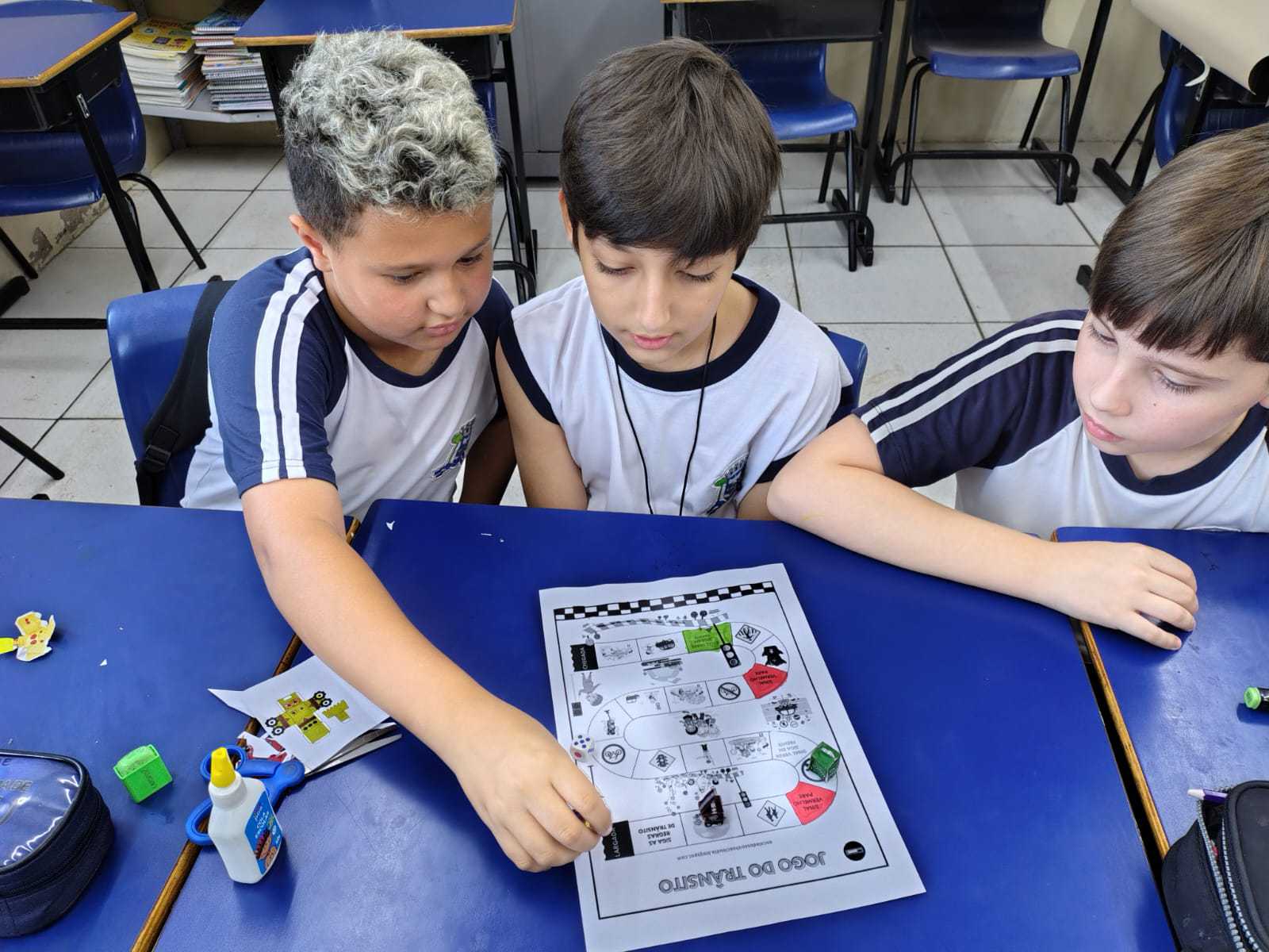 Os alunos do 5º ano confeccionaram um jogo de trilha / tabuleiro sobre as regras do trânsito. Depois de pronto e antes de jogar, a professora mediou uma roda de conversa sobre o que sabiam com relação às regras de …