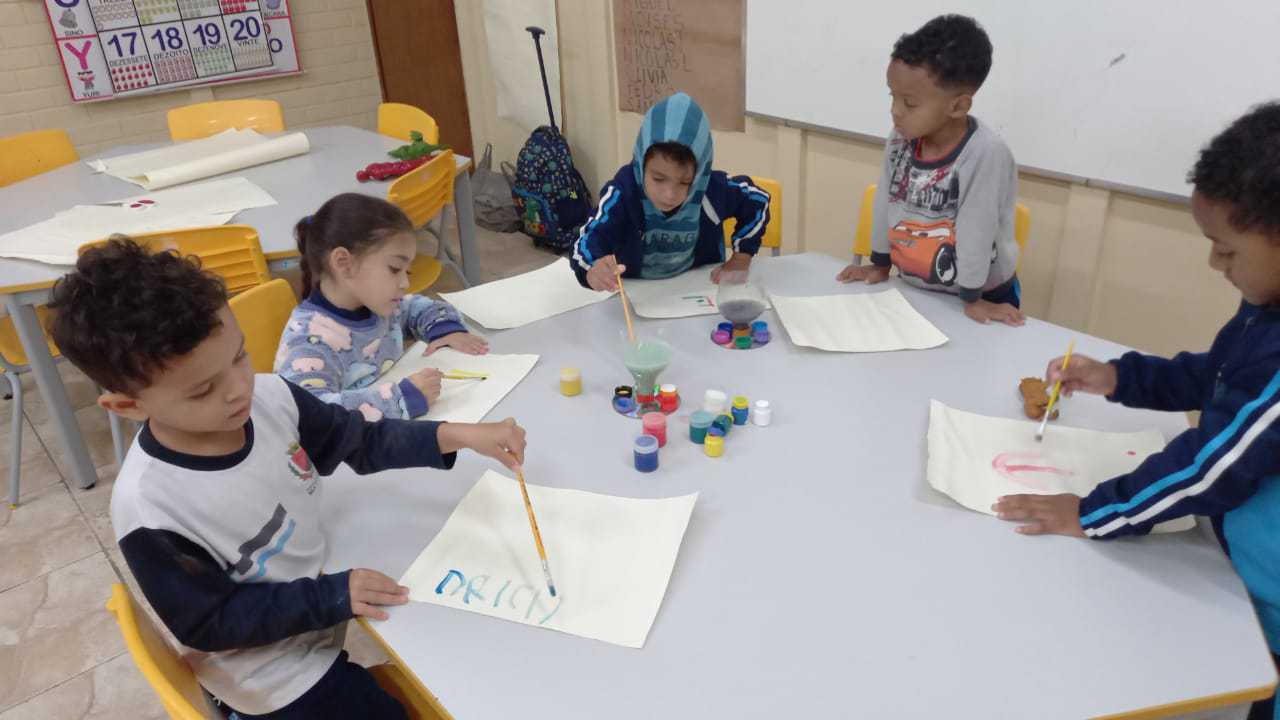 Confeccionamos paletas de pintura utilizando garrafas pet, tampinhas e CDs. Colocamos tinta e água, proporcionando às crianças a oportunidade de explorar diferentes formas de criar seus desenhos de maneira livre e criativa. Objetivos: Estimular a criatividade e a expressão artística …