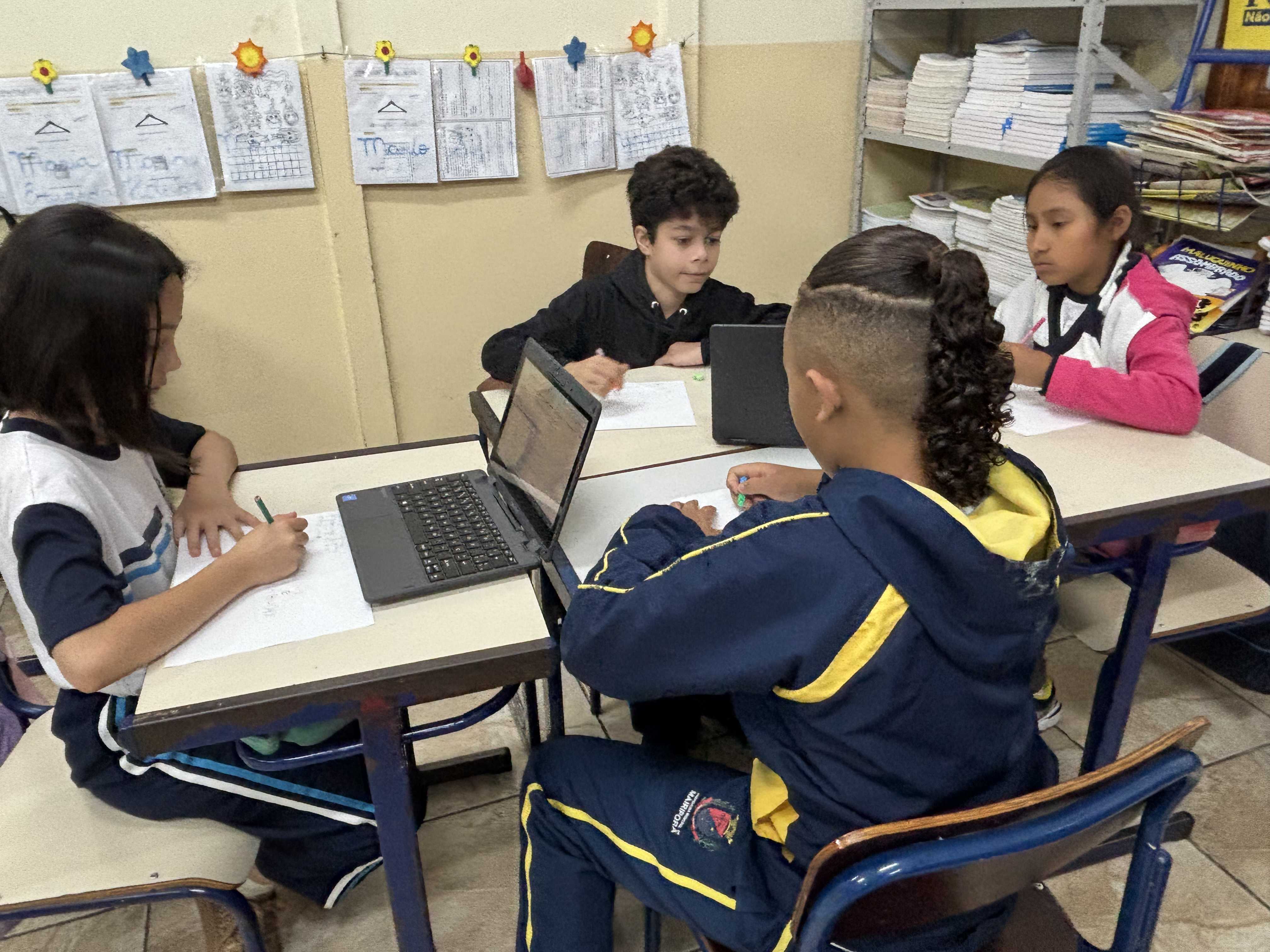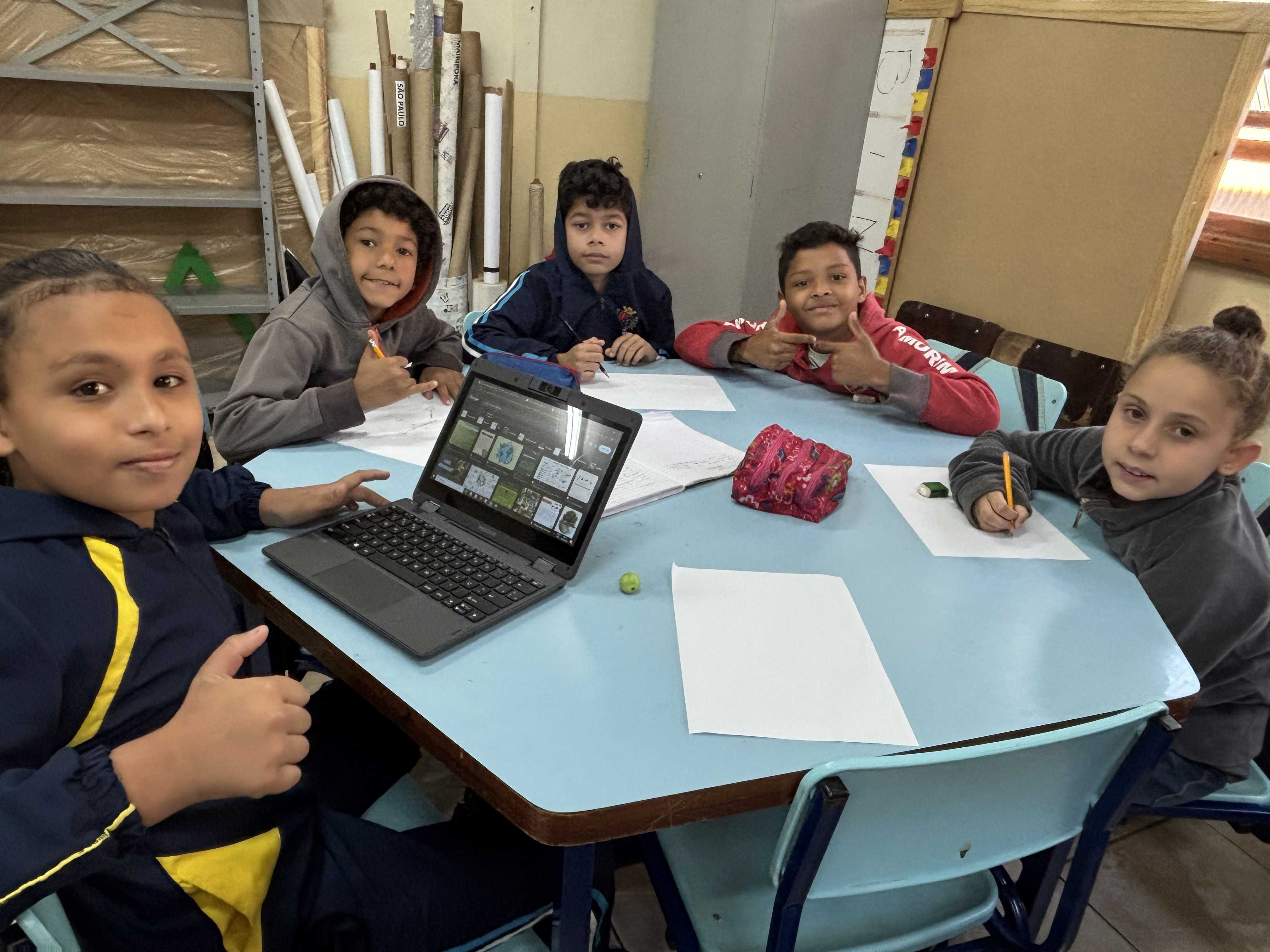 Durante a observação do entorno da escola, as crianças foram convidadas a recolher folhas de diferentes tamanhos, formas e espessuras. Após o momento de exploração, realizamos uma roda de conversa para observar as características das folhas e compartilhar descobertas. Em …
