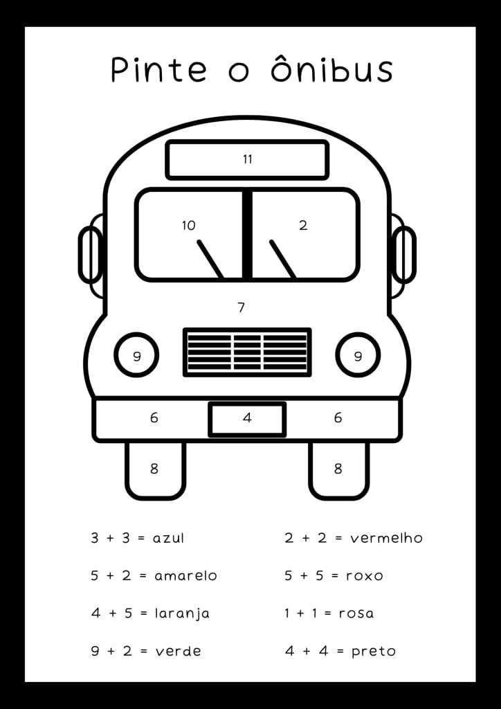 Pinte o Ônibus com Cálculos Nesta atividade, a criança deve resolver as continhas com o auxílio das tampinhas e descobrir a cor correspondente a cada número para pintar o ônibus corretamente. Objetivos : Desenvolver o raciocínio lógico e matemático por …