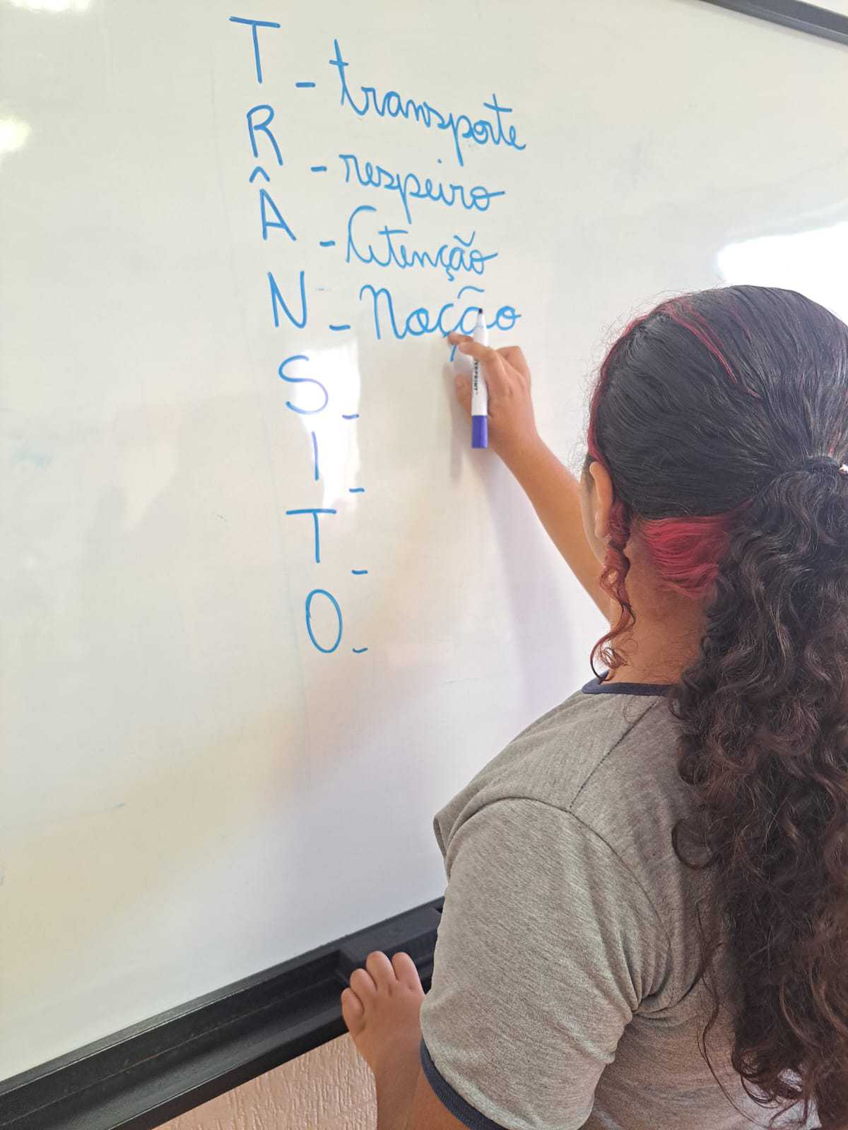 Acróstico com a palavra “Trânsito” Durante a aula, realizamos uma atividade de produção coletiva em que as crianças escreveram um acróstico na lousa utilizando a palavra “TRÂNSITO”. Cada letra foi associada a uma palavra relacionada ao tema, escolhida pelos próprios …