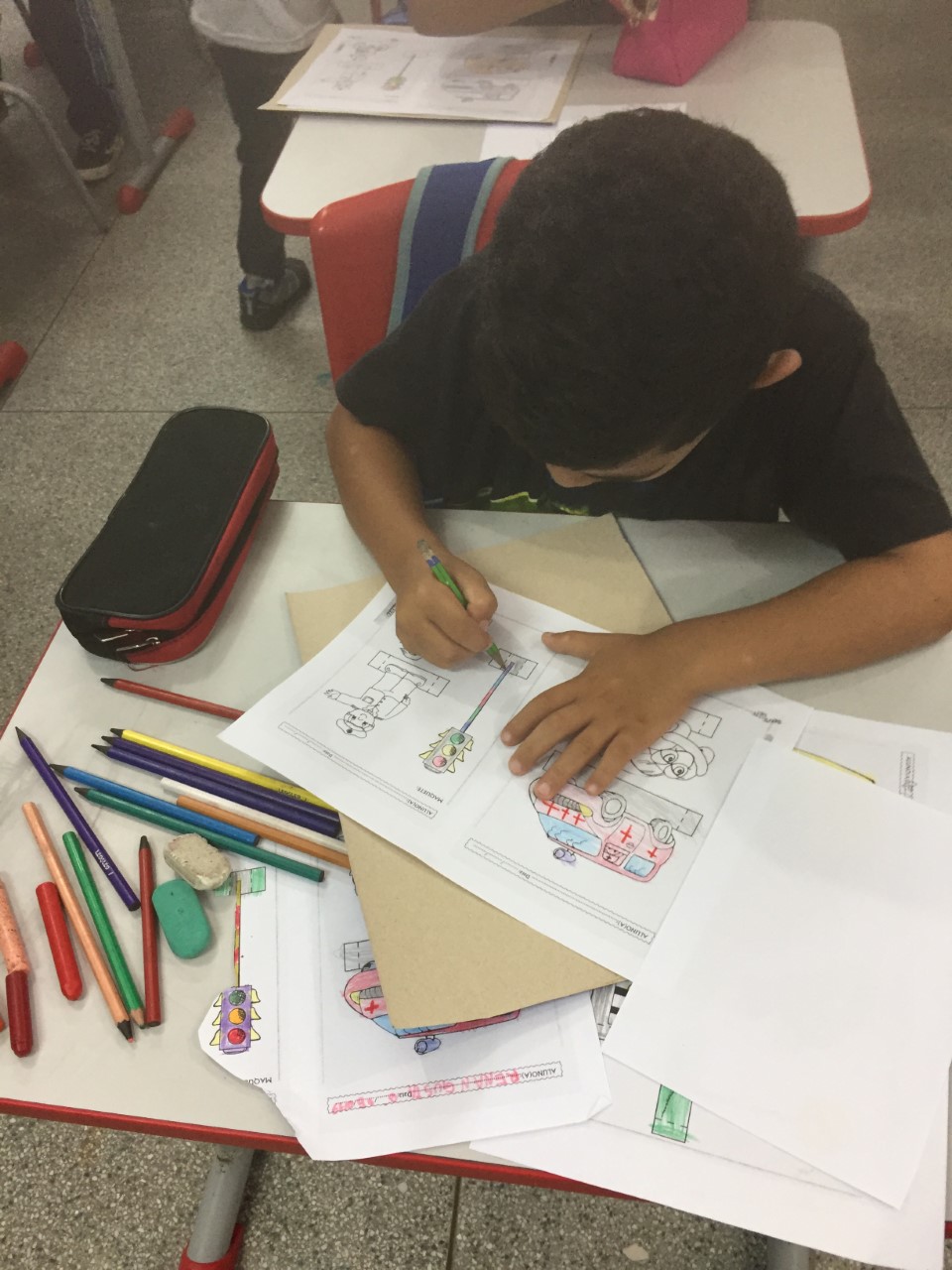 A atividade desenvolvida teve como objetivo fixar a aprendizagem dos alunos sobre os significados de algumas sinalizações de trânsito. Eles pintaram as imagens e as sinalizações de acordo com as cores corretas e os seus significados.